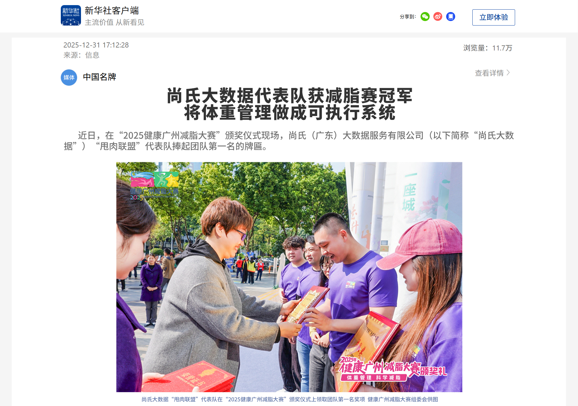 尚氏大数据代表队在“2025健康广州·体重管理挑战赛”中获团队第一名,累计减重超40公斤,相关实践获新华社报道。